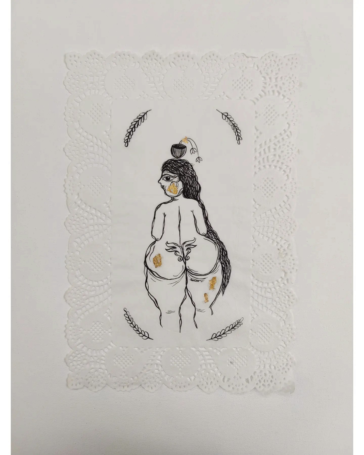 Acrylic and gold leaf on Doily