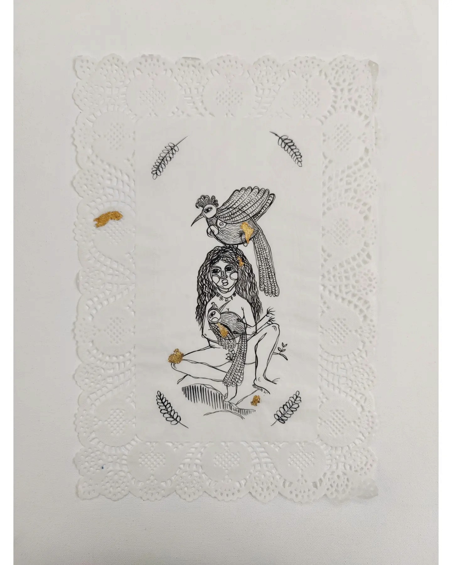 Acrylic and gold leaf on Doily
