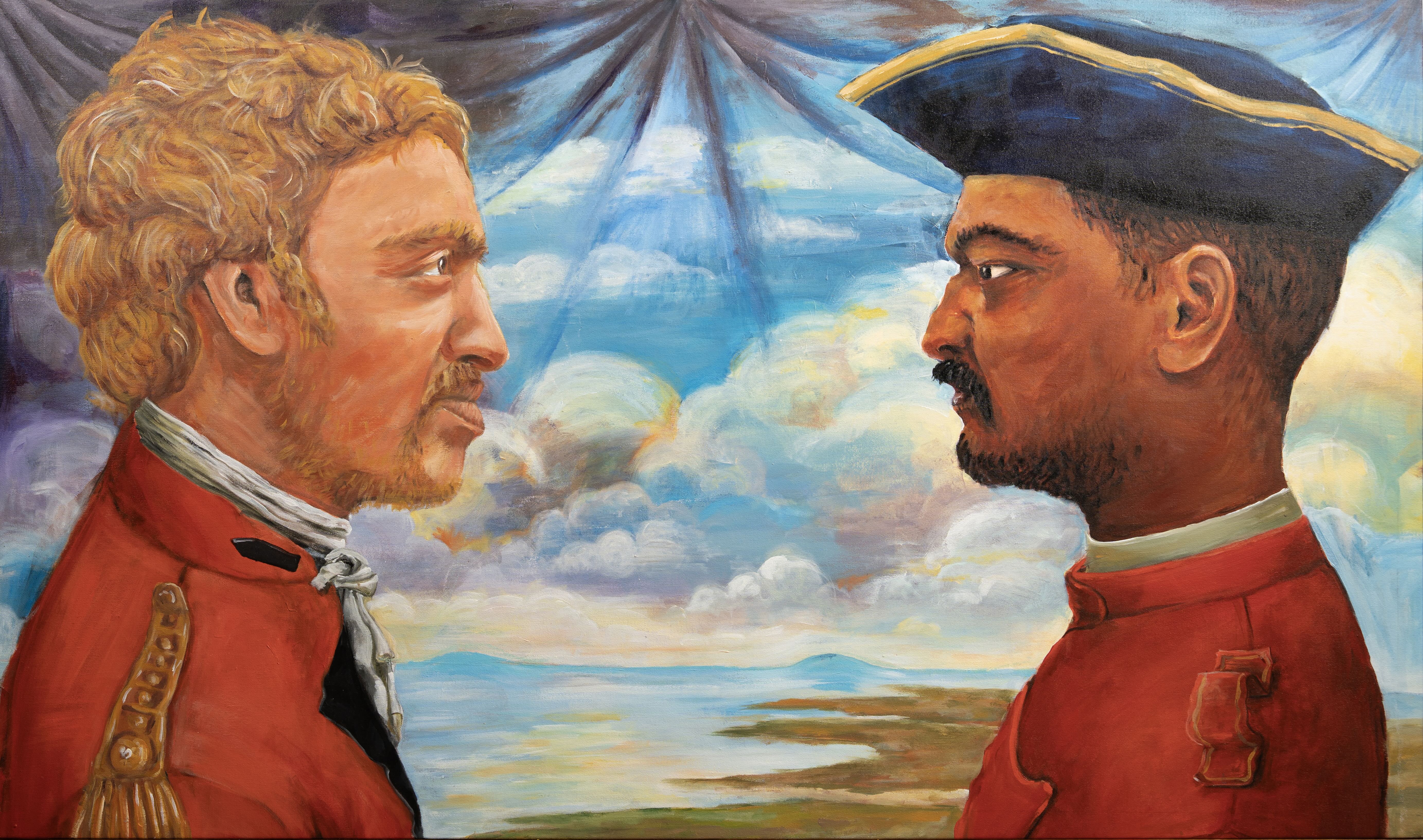 This work draws from popular theatre performances and the classical composition of Portraits of the Duke and Duchess of Urbino by Piero Della Francesca. By transforming the sky into a stage curtain, I emphasize the theatricality embedded within the scene and frame the landscape as a constructed space. The painting reflects on colonial artistic traditions—particularly landscape painting—and how their visual strategies continue to shape contemporary ways of seeing. By combining these influences with art-historical references, I explore how colonial aesthetics persist in popular culture and subtly inform our understanding of images today.