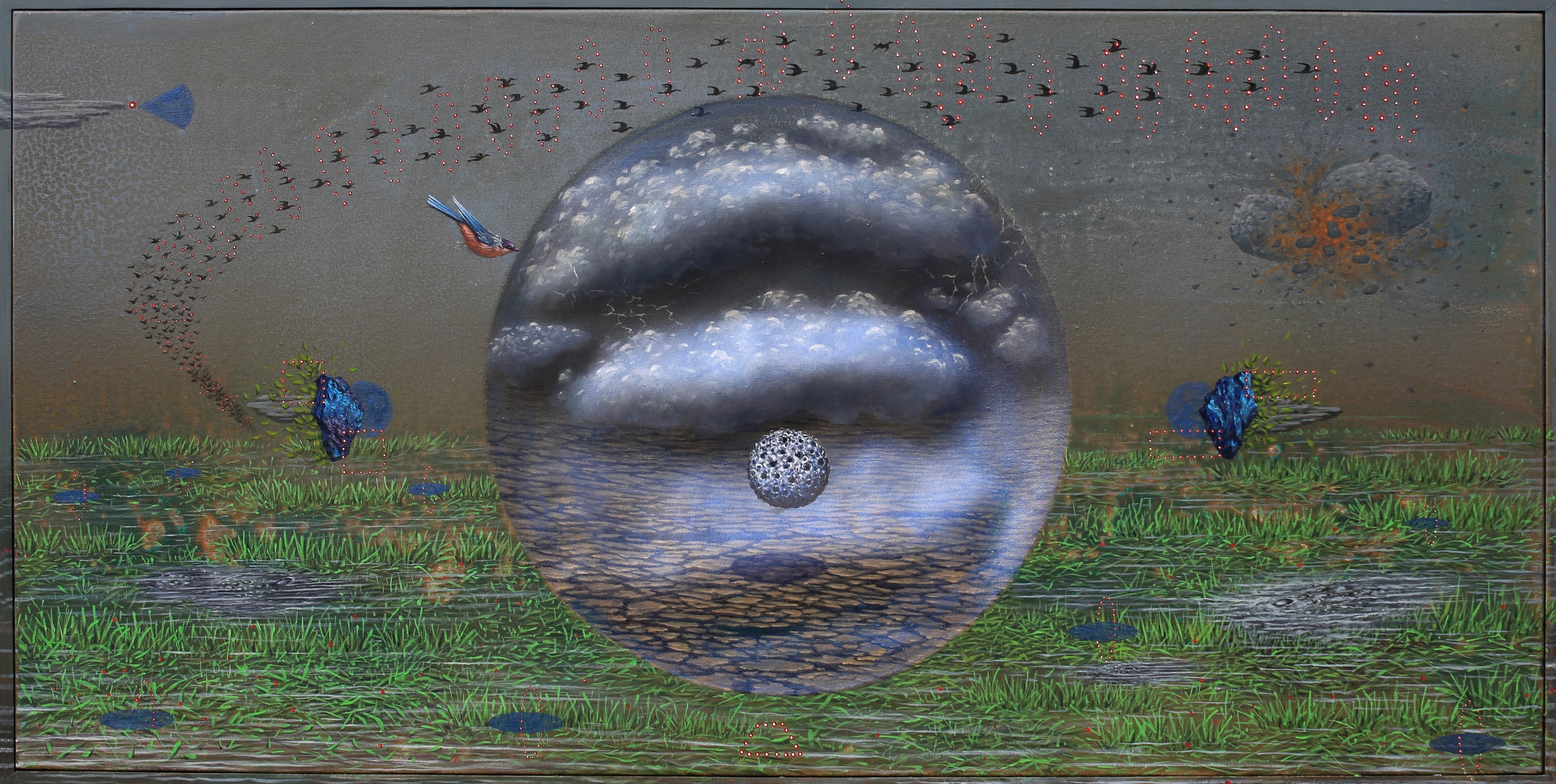 Natural Pigments, Acrylic on Canvas, Pasted on Board, LED Lights