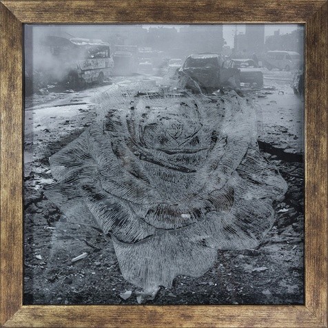 Foil Paper, Wire, Colour Dust & Image Transfer on Paper