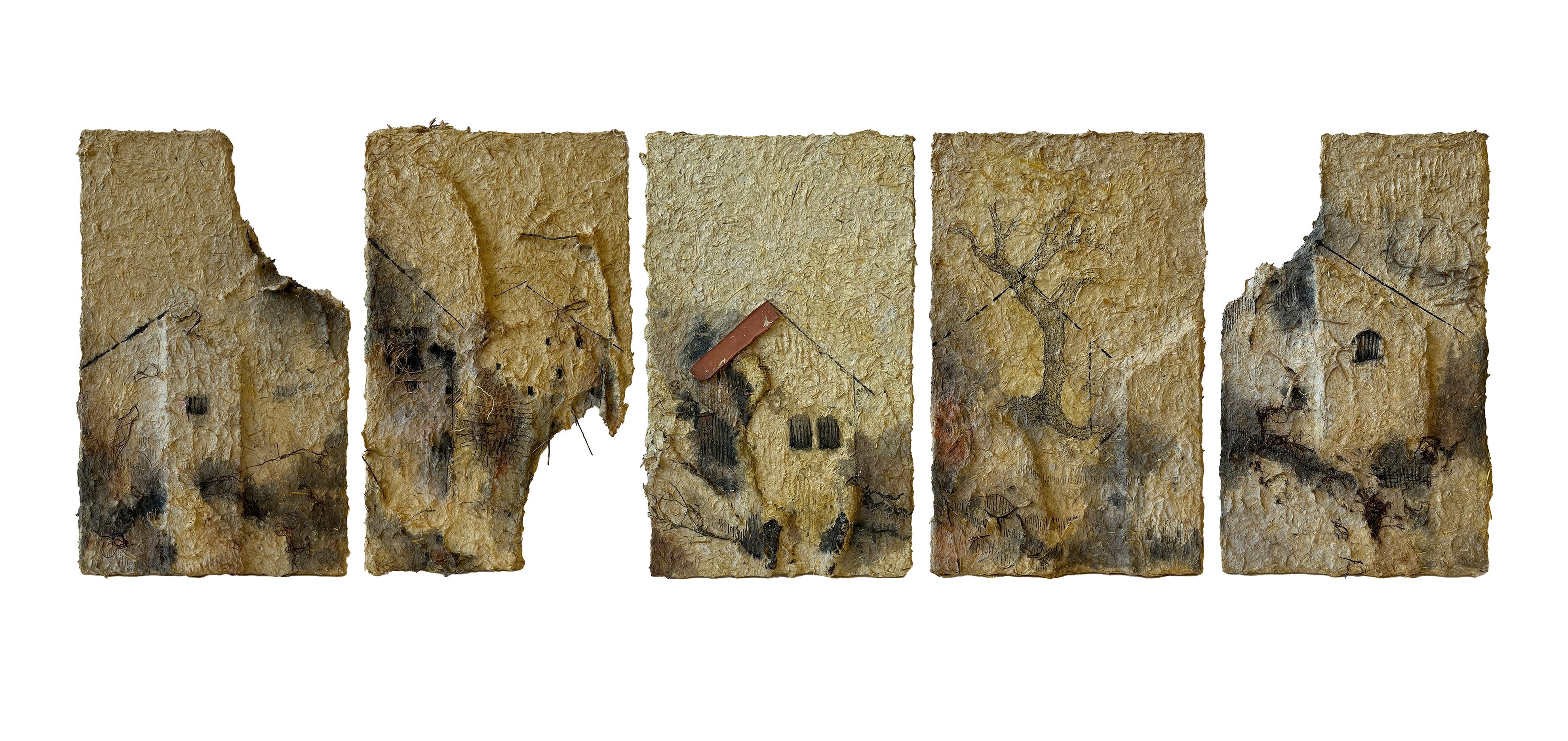 Rooted in environmental science, geography, and indigenous knowledge systems of Northeast India, his cross-disciplinary practice examines how fragmentation, urbanisation, and agricultural expansion disrupt ecosystems and force human–non-human conflict. Each work functions simultaneously as a material experiment and a visual map, recording geological shifts, ecological stress, and social imbalance. Gogoi’s practice foregrounds sustainability and collective responsibility, inviting reflection on habitat loss, resource inequity, and the fragile boundaries that bind human and non-human worlds.