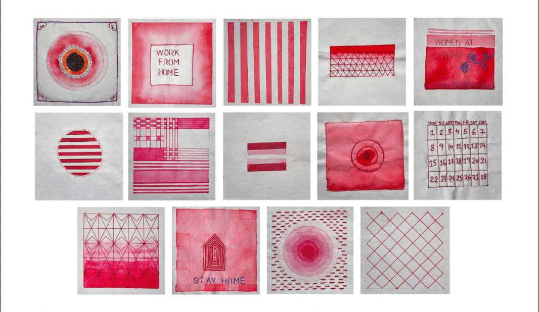 Singh works at the intersection of contemporary artistic practice and community-based embroidery and weaving in villages around Benaras. Her relationship to textile labour began early, through her mother’s boutique, a space of informal exchange where weavers gathered, talked, and worked. Language enters her practice quietly—through single-word poems such as Life Jacket or Repair, and through fragments of Kabir’s poetry, including the line, “No more I weave a garment of pain!”