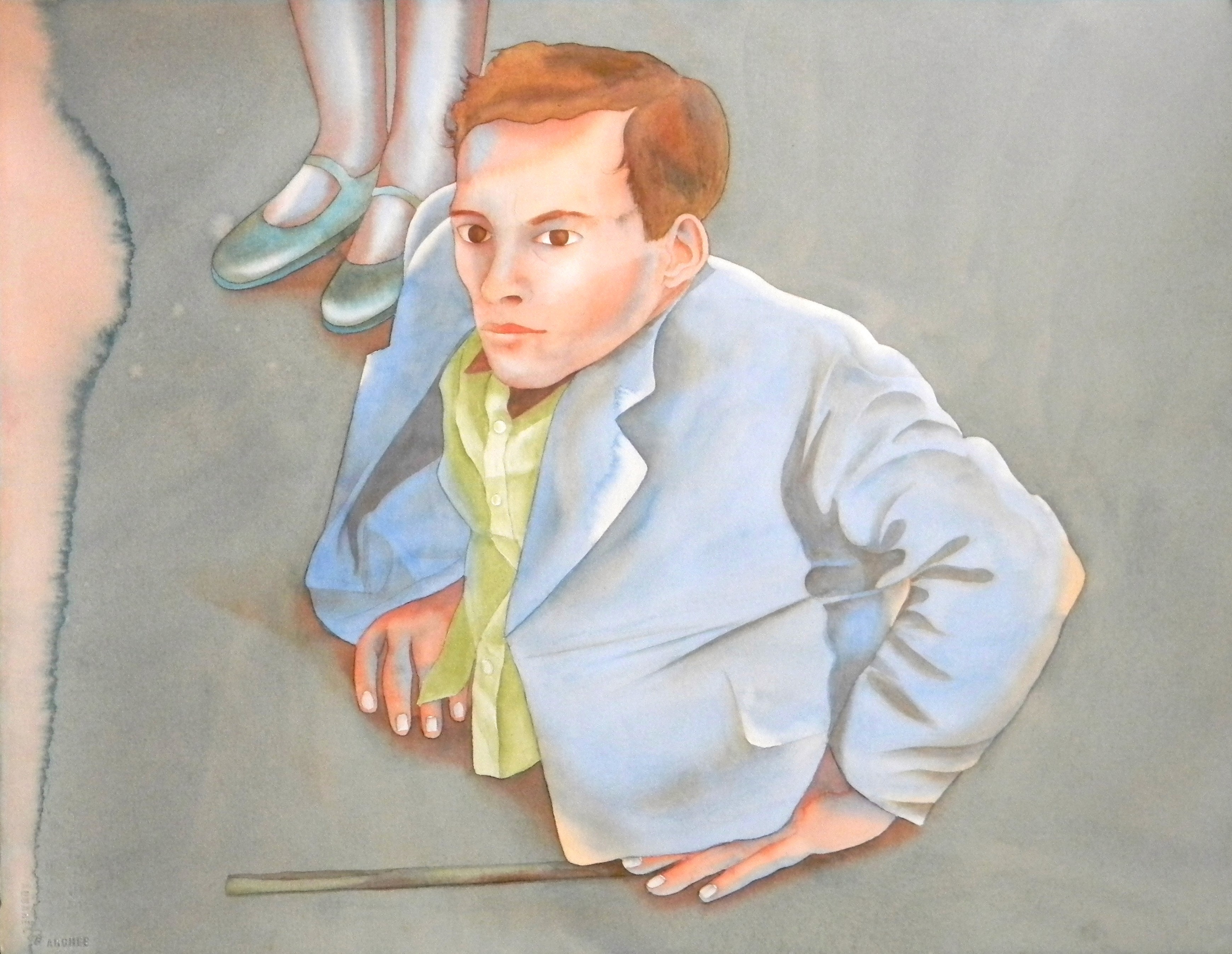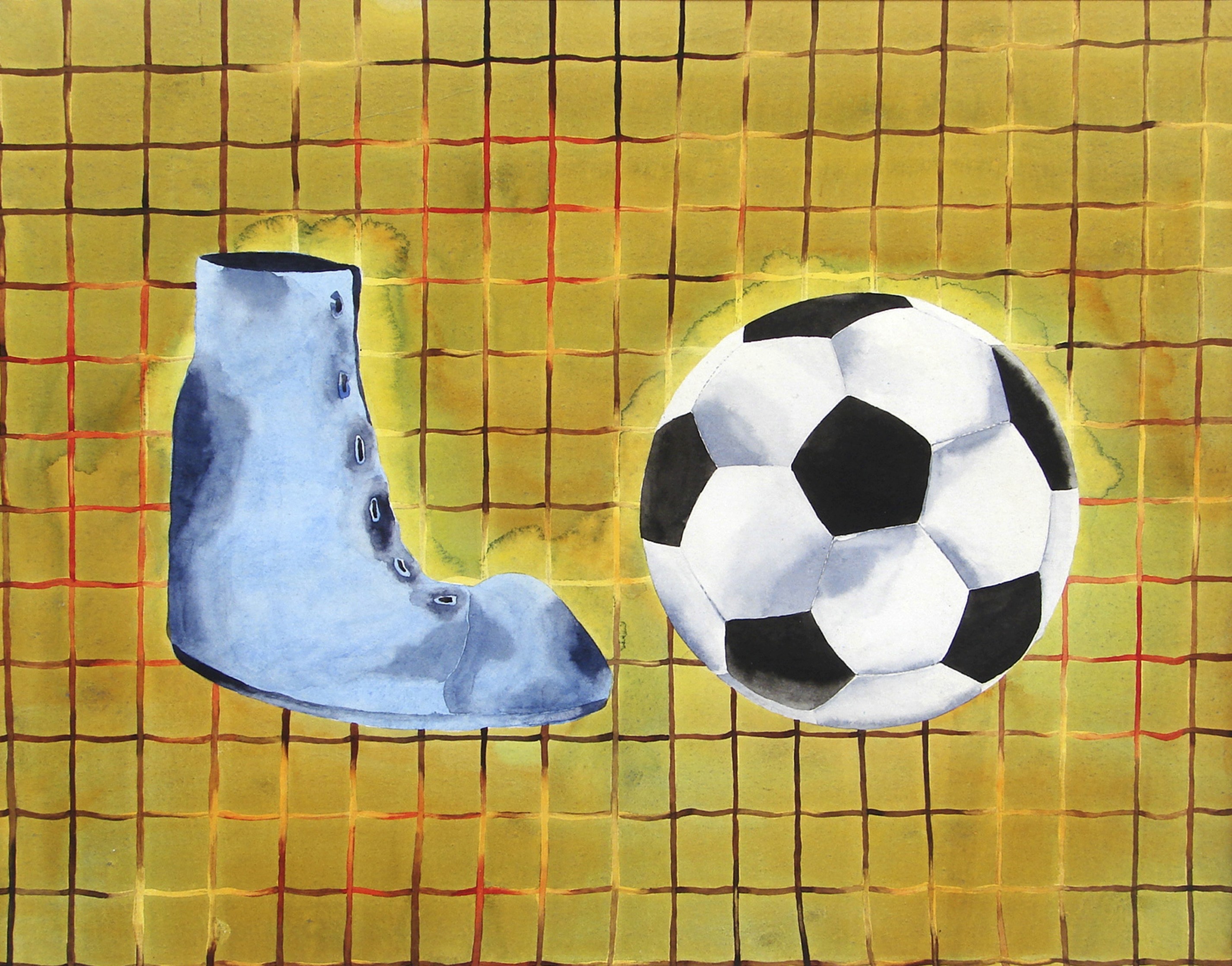 Patel’s paintings delve into themes that he faces in his daily life: (dis)ability, social exclusion, the body as vehicle, and interactions with physical environments. Though his collection of work contains diverse motifs, his core subjects include locomotor impairment and symbols of mobility: shoes, feet, athletics, and communication tools. The watercolors are often muted yet layered and rich, displaying a unique mastery of the medium. While his paintings sometimes tend toward the smaller size, he uses the space carefully to create thoughtful and nuanced statements on the place of disability in our world.